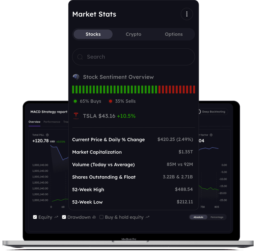 QuantCore cuts through the market noise with AI-generated signals tailored to your goals whether it's finding undervalued stocks, tracking volatility, or spotting momentum plays. It's insight that adapts to your strategy.
